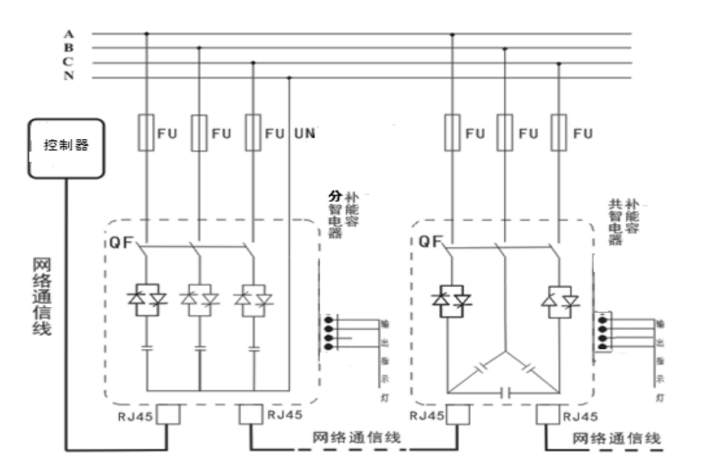 智能組網(wǎng):485通訊接口,內置 MODBUS-RTU協(xié)議;可實現(xiàn)遠程監(jiān)控。產(chǎn)品可多臺聯(lián)機使用時,自動產(chǎn)生主機從機,構成無功自動控制系統(tǒng)。
