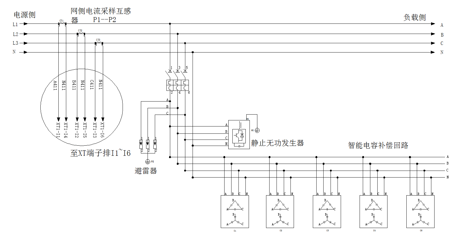 線路調(diào)節(jié):能夠解決系統(tǒng)三相負荷不平衡的問題,不僅不產(chǎn)生諧波,而且能在補償無功功率的同時動態(tài)的補償諧波;