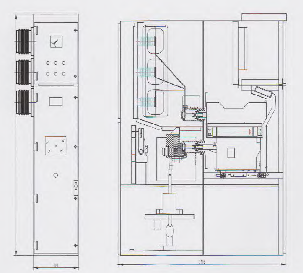 外殼為IP4X(最高可到IP43),隔離間,斷路器室門打開時(shí)為IP2X |