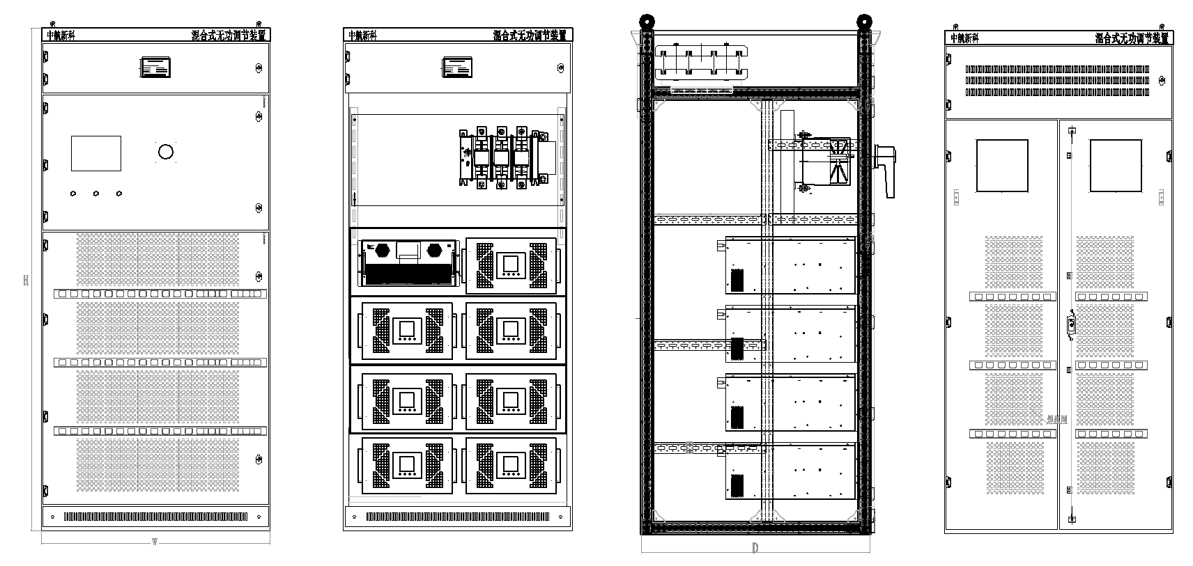 模塊設(shè)計;混合式無功補償裝置采用模塊化組裝工藝,結(jié)構(gòu)簡單合理,模塊組裝互換通用性強,可實現(xiàn)多種補償方案組合的標準化生產(chǎn)。