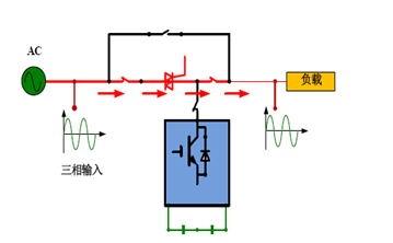 故障或維護(hù)的情況下,負(fù)載電流將自動(dòng)轉(zhuǎn)移到故障安全旁路。即電流將通過反并聯(lián)晶閘管的接觸器或旁路開關(guān),直接向負(fù)載供電