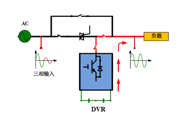 當(dāng)電網(wǎng)出現(xiàn)擾動(dòng)瞬間,反并聯(lián)晶閘管快速關(guān)斷,負(fù)載與電網(wǎng)隔離,由逆變器向負(fù)載供電